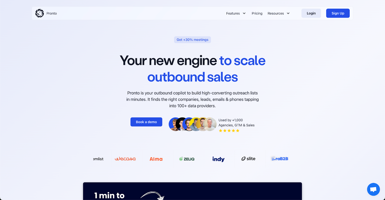 ProntoHQ is an outbound prospecting platform designed to accelerate qualified lead generation. It combines LinkedIn Sales Navigator data, over 100 data sources, and business intent signals (new hires, job changes, tech stack updates, team growth, and more) to help sales teams build stronger pipelines and reach the right leads at the right time.