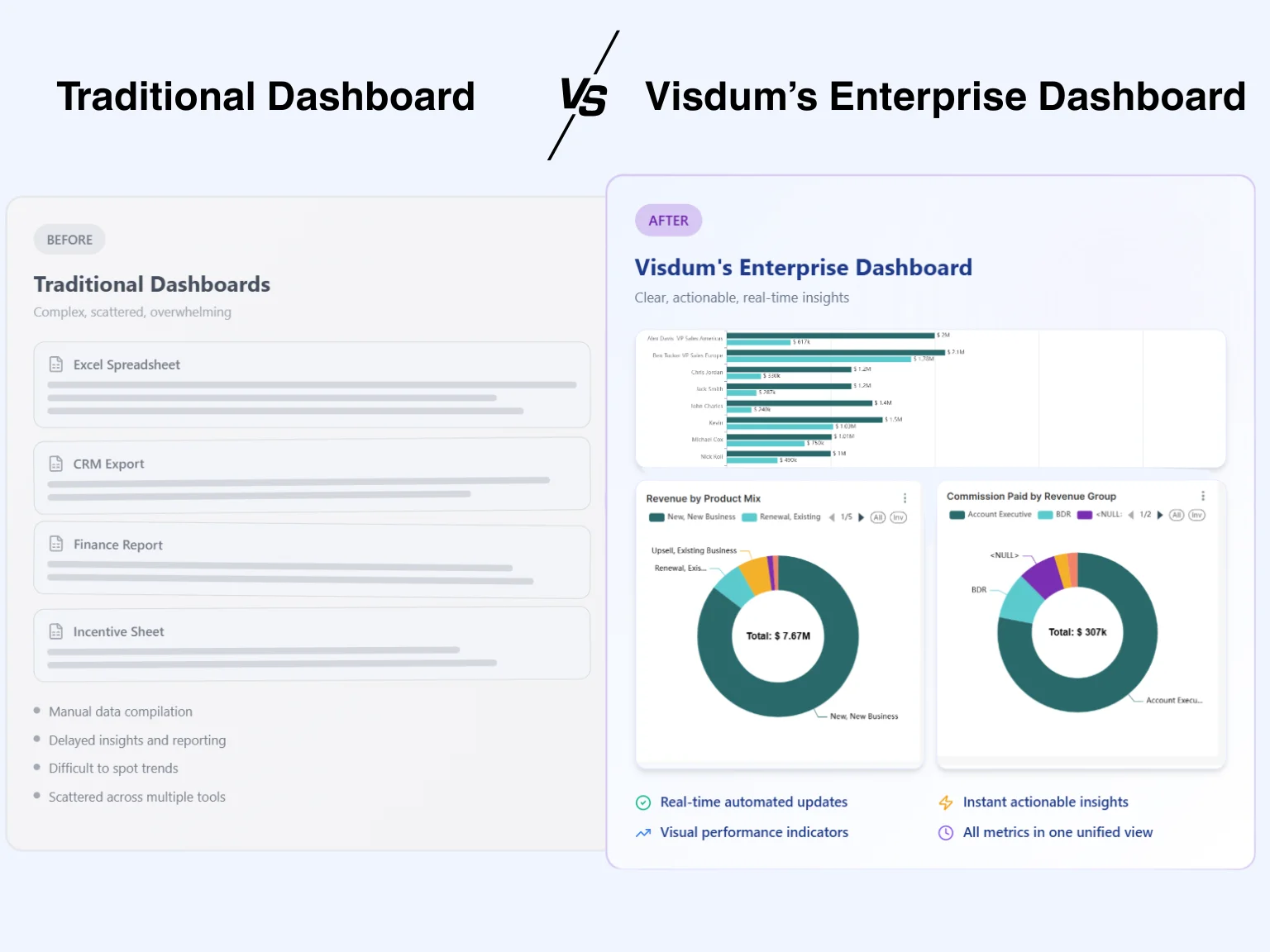Watch a short walkthrough of Visdum’s Enterprise Dashboard to see how leaders get real-time visibility into sales commissions and performance: