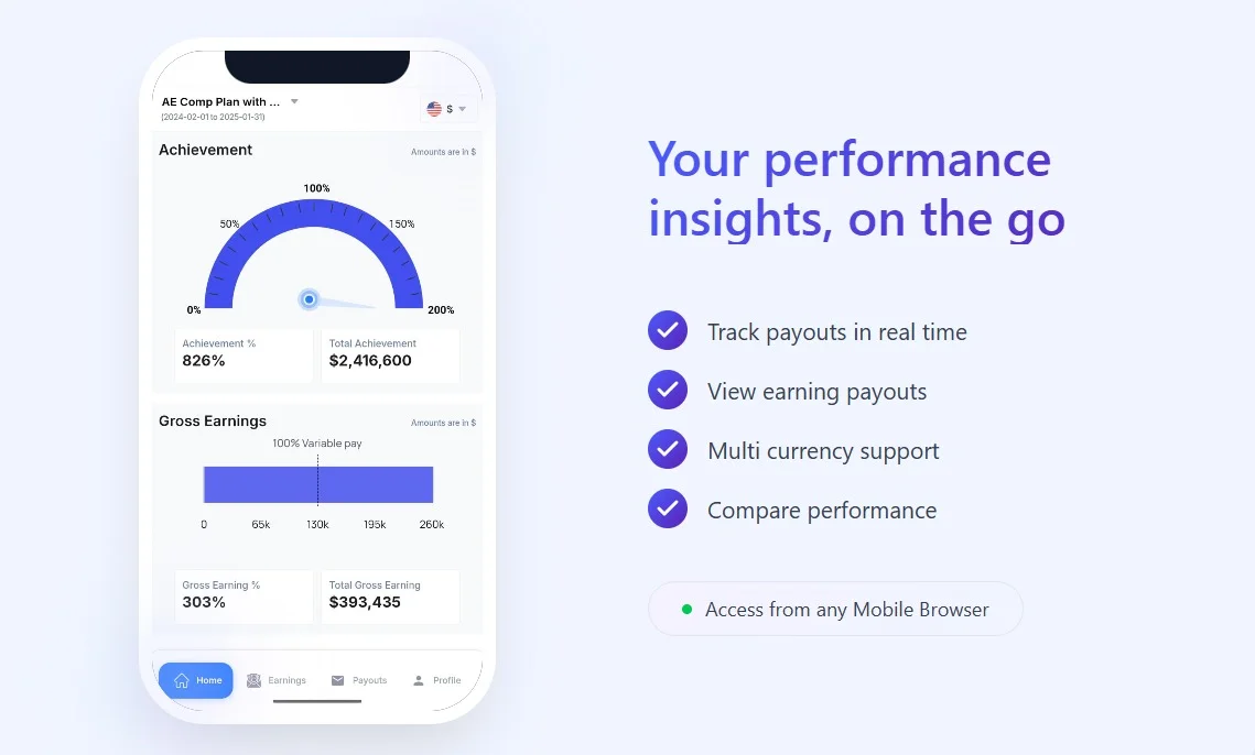 - The mobile friendly view brings clarity, transparency, and flexibility to incentive tracking.