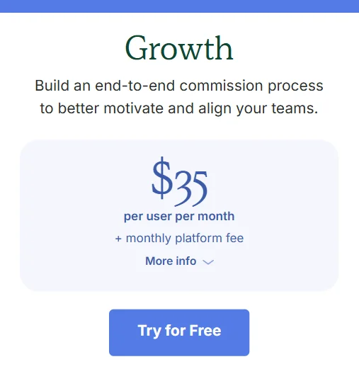 Your total investment depends on seat count, selected pricing tier, billing structure, and the level of implementation and support required. Teams with complex commission structures may require higher-tier plans.