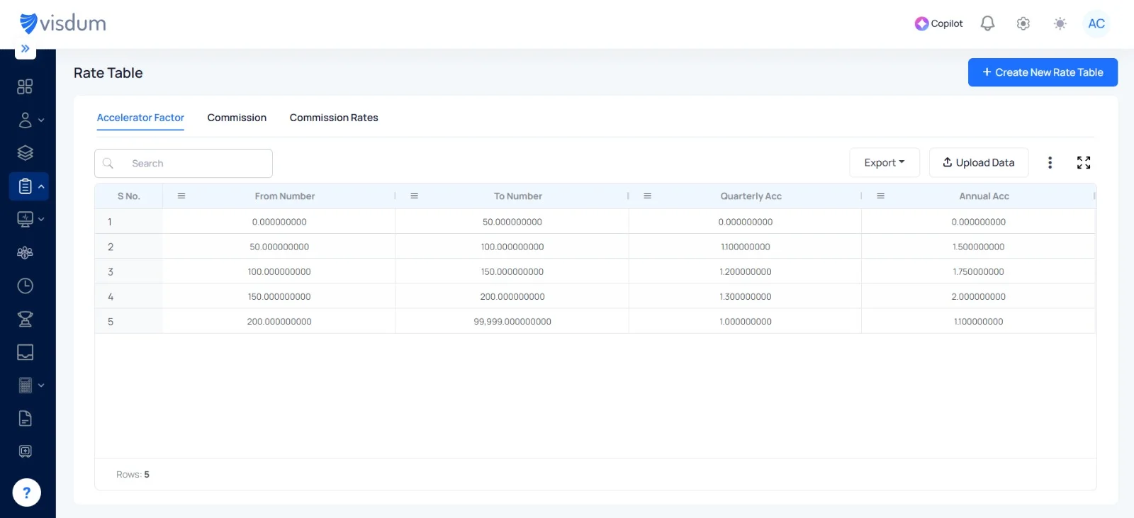 At its core, Visdum’s Rate Table acts as the single source of truth for all commission rates within your organization.