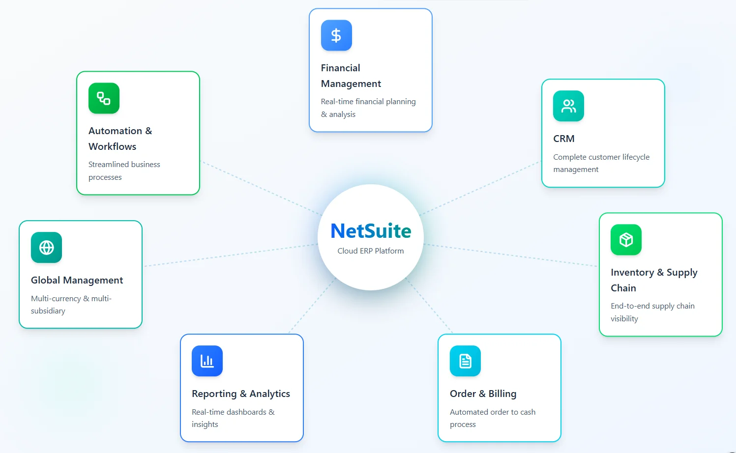 NetSuite is used to manage and automate a company’s core business processes in one unified system. Instead of relying on multiple disconnected tools, businesses use NetSuite to bring their operations, finance, and customer data together in one place.